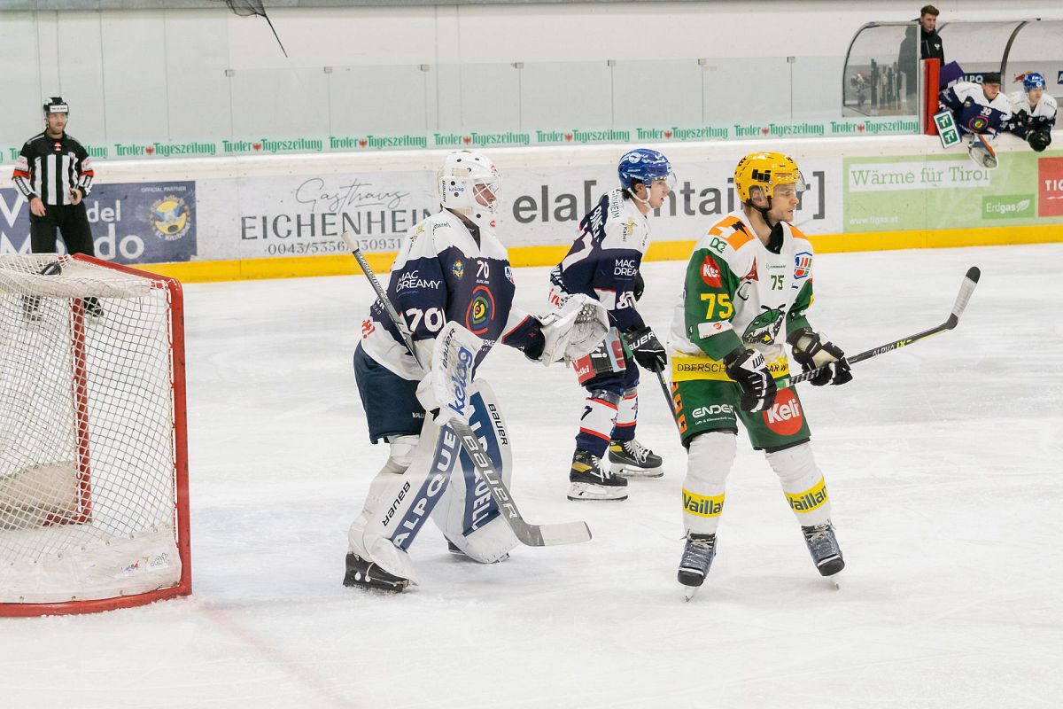 Auch im zweiten Abschnitt ging es munter hin und her, aber entweder retteten die Torhüter Lukas Moser und Eric Hanses oder (wiederholt auf beiden Seiten) das Aluminium. Ins Schlussdrittel startete Lustenau überfallartig und schnürte Kitzbühel zwischendurch regelrecht ein. Im Powerplay fiel schließlich die fast logische Führung und bald darauf das 1:3. Nun waren die Adler wieder am Zug – und wie: Erst hämmerte Martin Urbanek den Puck an die Stange, kurz darauf machte es ihm Kapitän David Kreuter fast gleich, doch sein Schuss zappelte in den Maschen. Nun waren noch zwei Minuten auf der Uhr und Lukas Moser verließ seinen Kasten. 52 Sekunden vor der Sirene wurde das Risiko der Adler belohnt und Raivo Freidenfelds gelang aus einem Getümmel heraus das umjubelte 3:3. In der Overtime musste allerdings Mario Ebner nach einer umstrittenen Strafe in die Kühlbox und diese Chance ließ sich das – mit großem Abstand – beste Powerplayteam der Liga nicht entgehen.